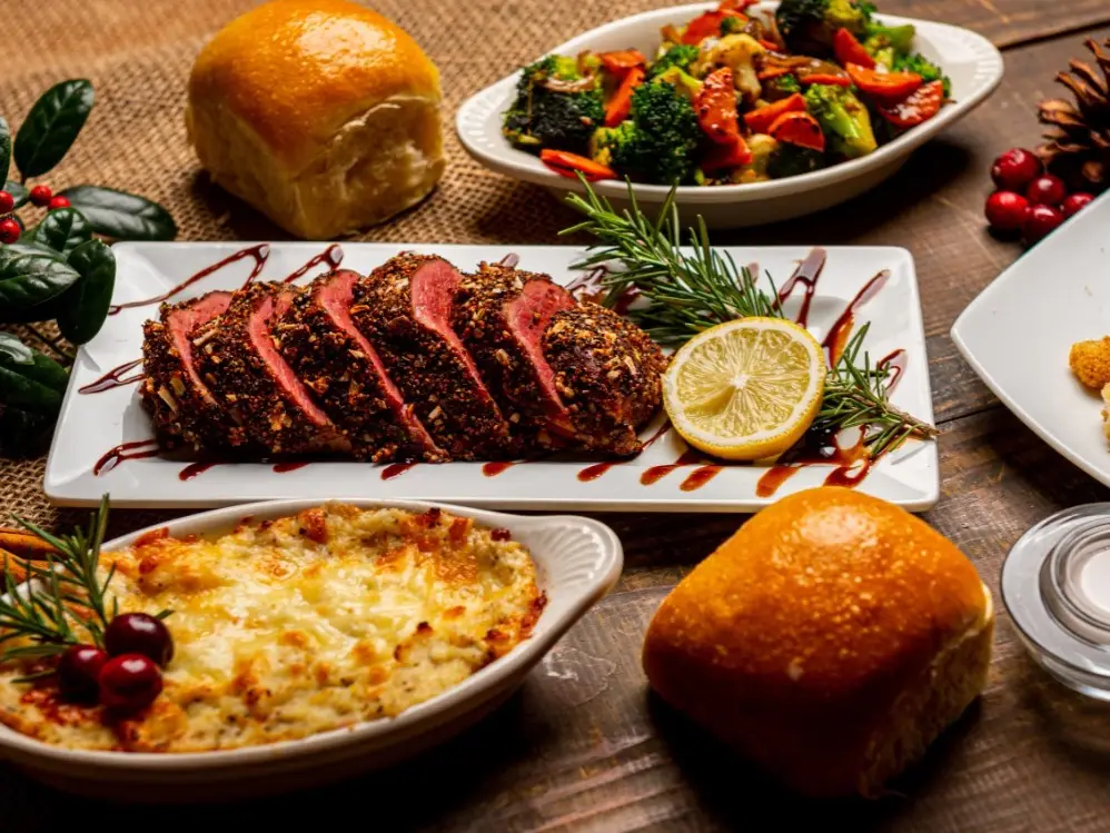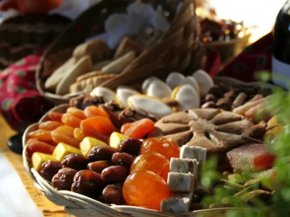 Noix, figues sèches, amandes, raisins secs, pompe à l'huile / fougasse, nougat blanc, , dattes, calissons d'Aix, pâte de coing, raisin blanc, oranges ou clémentines ou mandarines, fruits confits, abricots secs